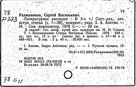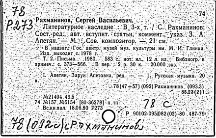 Литература: Асафьев Б. В., С. В. Рахманинов, [М.], 1945; С. В. Рахманинов. Сб. статей и материалов, М. - Л., 1947; С. В. Рахманинов и русская опера. Сб. статей, М., 1947; Молодые годы С. В. Рахманинова. Письма. Воспоминания, Л. - М., 1949; Понизовкин Ю., Рахманинов - пианист, интерпретатор собственных произведений, М., 1965; Брянцева В., Фортепианные пьесы Рахманинова, М., 1966; ее же, Детство и юность Сергея Рахманинова, 2 изд., М., 1972; С. В. Рахманинов в Ивановке. Сб. материалов и документов, Воронеж, 1971; Келдыш Ю., Рахманинов и его время, М., 1973; Воспоминания о Рахманинове, Сост. 3. Апетян, т. 1-2, 4 изд., М., 1974; Памяти С. В. Рахманинова. [Сб. воспоминаний], Нью-Йорк, 1946.
