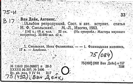 Литература: Лисенков Е. Г., Ван Дейк, Л., 1926; [Смольская Н. Ф.], Антонис ван Дейк, М. - Л., 1963; Glück G., Antonis van Dyck. Des Meisters Gemälde, 2 Aufl., Stuttg. - B., 1931; Puyvelde L. van. Van Dyck, Brux. - Arnst., 1950.