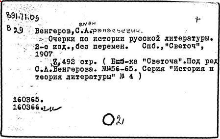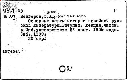 русский историк литературы, библиограф. Родился в Дубне. Окончил юридический факультет Петербургского университета (1879 г.) и экстернат историко-филологического факультета Юрьевского университета (1880 г.). Представитель культурно-исторической школы. В работах "Героический характер русской литературы" (1911 г.), "В чём очарование русской литературы XIX века?" (1912 г.) и др. Венгеров доказывал, что русская литература всегда была кафедрой, с которой раздавалось учительское, гражданское слово.