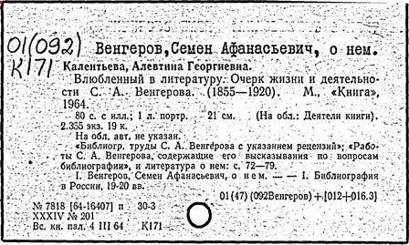 Литература: Поляков А. С., Труды профессора С. А. Венгерова. Библиографический перечень, М., 1916; Фомин А. Г., С. А. Венгеров как организатор и первый директор Российской книжной палаты, Л., 1925; Калентьева А. Г., Влюбленный в литературу, М., 1964.
