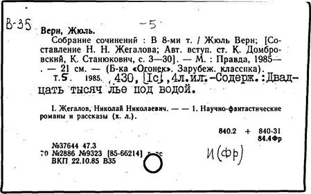 Литература: Андреев К., Три жизни Ж. Верна, М., 1956; Брандис Е. Ж. Берн, Л., 1963; История французской литературы, т. 3, М., 1959; Брандис Е. и Лазарев М., Жюль Верн. Библиографический указатель, 2 изд., М., 1959;