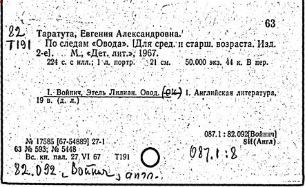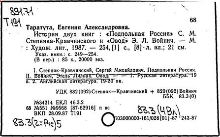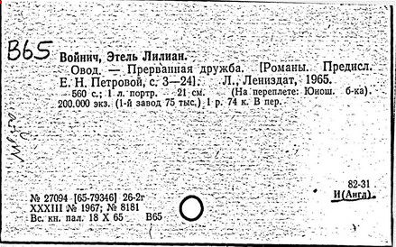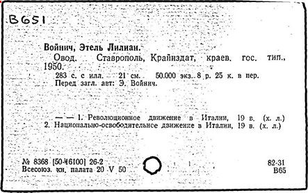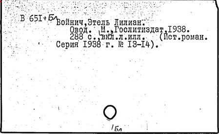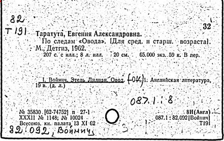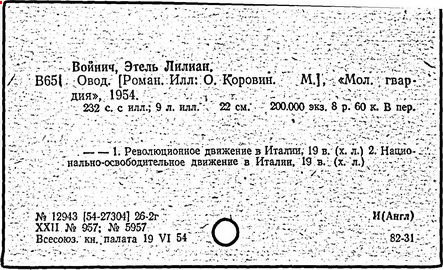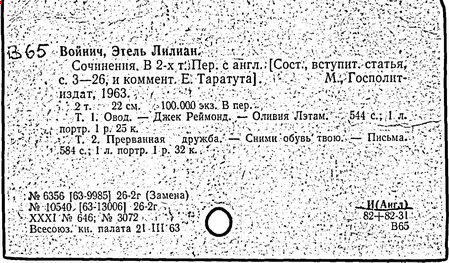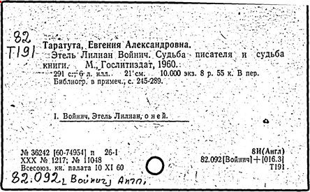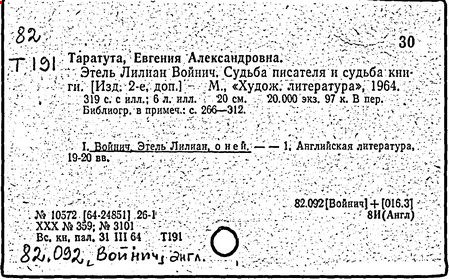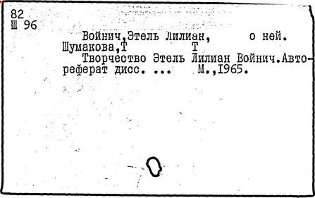 Литература: Катарский И. Этель Лилиан Войнич. М., 1957; Таратута Е. Этель Лилиан Войнич. 2 изд. М., 1964; Шумакова Т. [сост.]. Этель Лилиан Войнич: Биобиблиогр. указ. М., 1958.