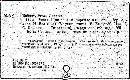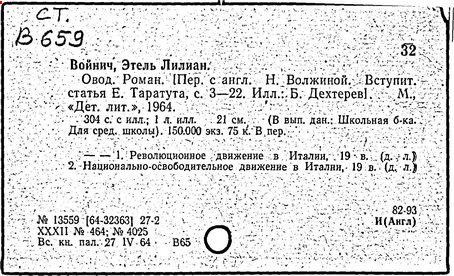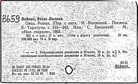 Овод [Текст]: Роман/ Э.Л. Войнич; Пер. с англ. Н. Волжиной.