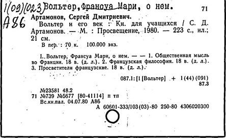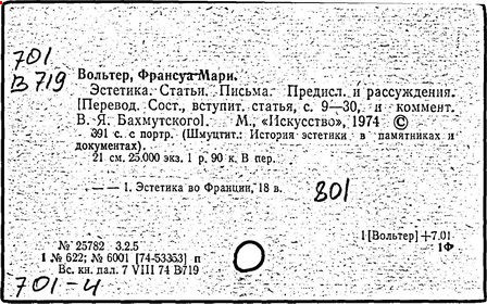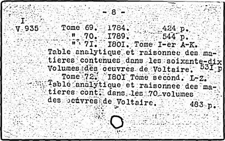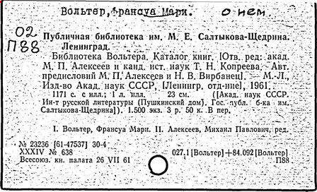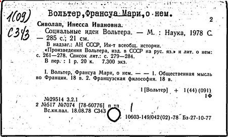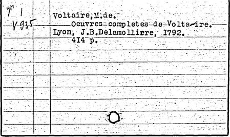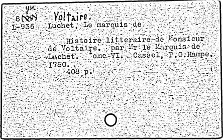 Библиографии: Языков Д., Вольтер в русской литературе, 2 изд., М., 1902; Державин К. Н., Из русской библиографии Вольтера, в сб.: Вольтер, Л., 1948; Библиотека Вольтера. Каталог книг, М. - Л., 1961; Quérard J. М., Bibliographie voltairienne, P., 1824; Bengesco G., Bibliographie des oeuvres de Voltaire, v. 1-4, P., 1882-90; Barr M., A bibliography of writings on Voltaire, 1825-1925, N. Y., 1929; ее же, Quarante années d"etudes voltairiennes. Bibliographie analytique des livres et articles sur Voltaire, 1926-1965, P., [1969].