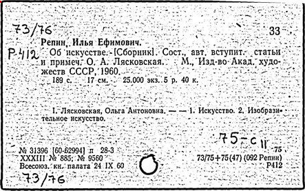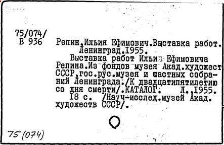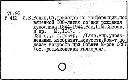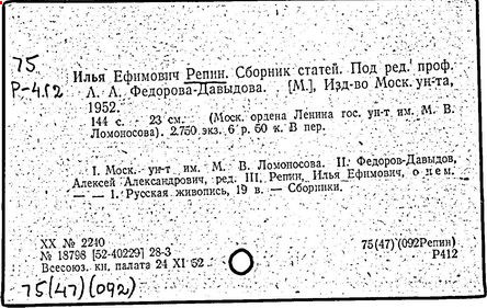 Литература: Репин. [Статьи и материалы], т. 1-2, М. - Л., 1948-49 (Художественное наследство...); Федоров-Давыдов А. А., И. Е. Репин, М., 1961; Лясковская О. А., И. Е. Репин, 2 изд., М., 1962; Грабарь И. Е., И. Е. Репин, т. 1-2, М., 1963-64; Новое о Репине, [Л., 1968].