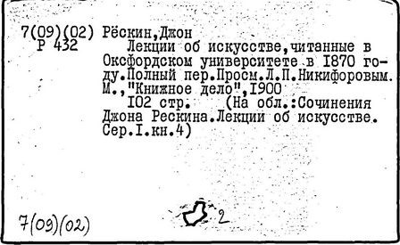 Ранние сочинения Рёскина отличаются патетикой и изысканностью литературного стиля; позднее он заботился о ясности слога, его доступности простому народу (незаконченные мемуары "Прошлое", 1886 – 1900 гг.). Близкий к У. Моррису, Рёскин участвовал в организации его художественно-промышленных мастерских. Известен также как рисовальщик и акварелист. Несмотря на противоречия в воззрениях Рёскина, их утопизм, в целом они оказали значительное влияние на развитие европейской культуры 2-й половины XIX в. В России труды Рёскина высоко ценились Л. Н. Толстым.