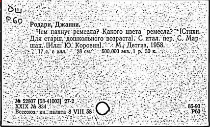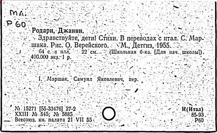 Также писал стихи, дошедшие до русского читателя в переводах Самуила Маршака (например, «Чем пахнут ремёсла?») и Якова Акима (например, «Джованнино-Потеряй»). Большое количество переводов книг на русский язык выполнено Ириной Константиновой.