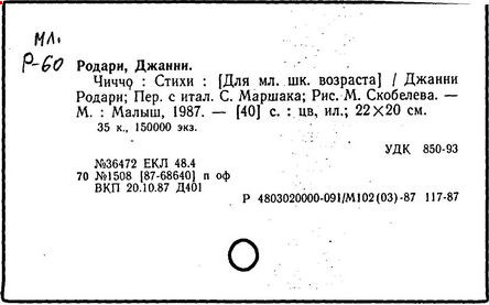[Сб. сказок]:Кн. для чтения:(Адапт.)/ Дж. Родари; Сост.