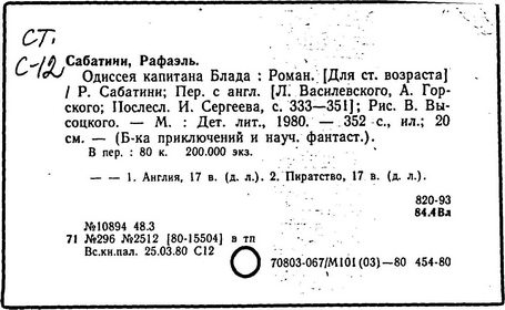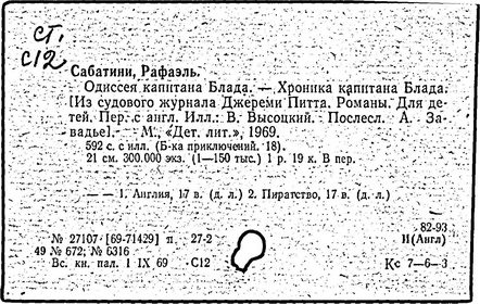 английский писатель, автор исторических романов. Родился в Йези (близ Анконы, Италия). Получил образование в Швейцарии и Португалии, после чего поселился в Англии. Первый роман, «Рыцарь таверны» («The Tavern Knight»), вышел в свет, когда Сабатини было 29 лет. Настоящая известность пришла к писателю в 1921 г., после публикации романа «Скарамуш» («Scaramouche»). Из произведений Сабатини наиболее известны «Барделис Великолепный» («Bardelys the Magnificent», 1906 г.), «Морской ястреб» («The Sea Hawk», 1915 г.), «Западня» («The Snare», 1917 г.), «Одиссея капитана Блада» («Captain Blood», 1922 г.) и ее продолжения – «Хроника капитана Блада» («The Chronicles of Captain Blood», 1931 г.) и «Удачи капитана Блада» («The Fortunes of Captain Blood», 1936 г.), «Белларион» («Bellarion», 1926 г.), «Гончие Бога» («The Hounds of God», 1928 г.), «Черный лебедь» («The Black Swan», 1933 г.) и «Колумб» («Columbus», 1942 г.). Среди его исторических трудов следует отметить «Жизнь Цезаря Борджиа» («The Life of Cesare Borgia», 1912 г.) и «Торквемада и испанская инквизиция» («Torquemada and the Spanish Inquisition», 1913 г.). Умер Сабатини в Адельбодене (Швейцария) 13 февраля 1950 г.
