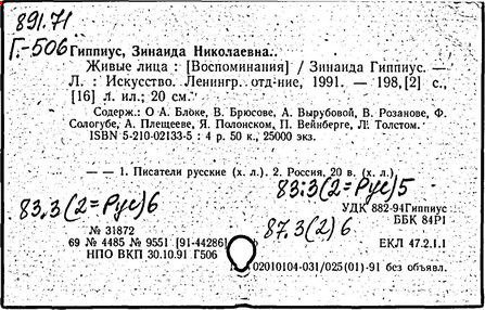Октябрьскую революцию 1917 г. встретила крайне враждебно. Ненависть к Октябрьской революции заставила Гиппиус порвать с теми из бывших друзей, кто принял её, - с Блоком, Брюсовым, Белым. История этого разрыва составила суть мемуарного цикла Гиппиус «Живые лица» (1925 г.). Революция была описана ею как «тягучее удушье» однообразных дней, «скука потрясающая» и вместе с тем, «чудовищность», вызывавшая одно желание: «ослепнуть и оглохнуть». В корне происходившего Гиппиус усматривала некое «Громадное Безумие» и считала крайне важным сохранить позицию «здравого ума и твердой памяти».