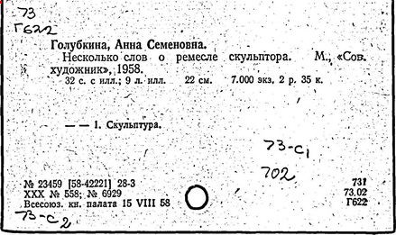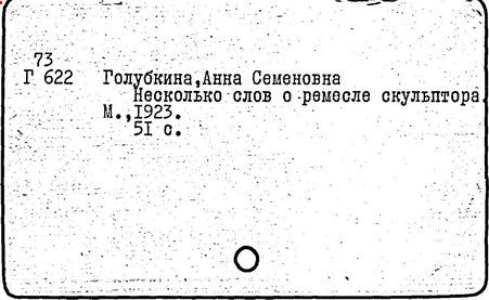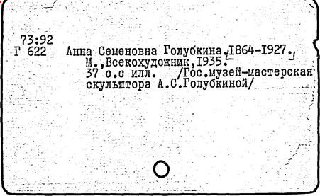 Литература: А. С. Голубкина. Юбилейная выставка. Каталог. М., 1964; Лукьянов С. Жизнь А. С. Голубкиной. М., 1969.