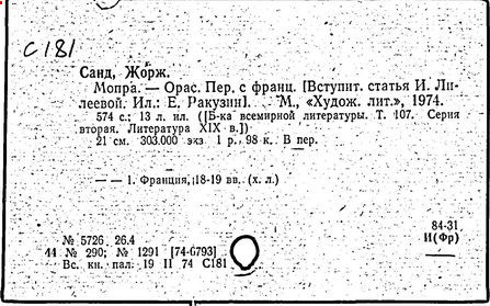 (псевдоним - настоящее имя и фамилия Аврора Дюпен, Dupin; по мужу – Дюдеван [Dudevant])