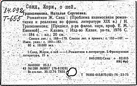 Литература: Белинский В. Г., Полное собрание соч., т. 1-13, М., 1959 (см. указатель); Каренин В., Жорж Санд, ее жизнь и произведения, т. 1-2, СПБ - П., 1899-1916; Скафтымов А., Чернышевский и Жорж Санд, в его кн.: Статьи о русской литературе, [Саратов, 1958]; Моруа А., Жорж Санд, 2 изд., М., 1968; Реизов Б., Жорж Санд и крестьянско-плебейская революция в Чехии, в его кн.: Из истории европейских литератур, [Л.], 1970; Larnac J., G. Sand révolutionnaire. P., [1948]; Blanc A., Notre amie G. Sand, P., 1950; "Europe", 1954, № 102-103 (спец. номер); Thomas G., G. Sand, P., [1959]; Salomon P., G. Sand, P., [1962]; Edwards S., G. Sand, N. Y., [1972].