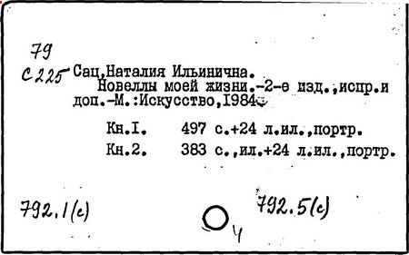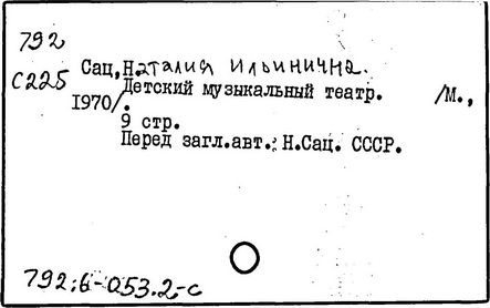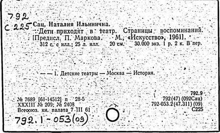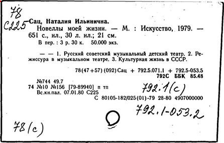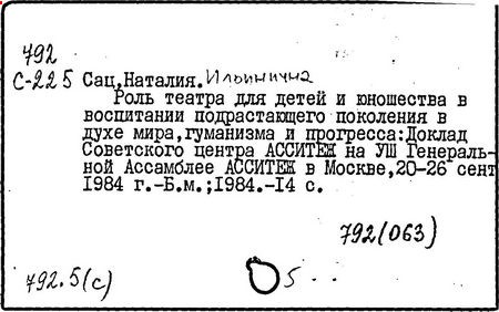Литература: Музыка. Театр. Дети. Н. Сац и её творческая деятельность, М., 1977; Викторов В., Наталия Сац и Детский музыкальный театр, М., 1993.