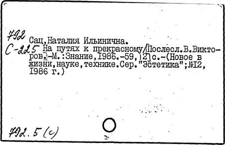 исканиях, театре [Текст]/ Р.Н. Сац. -М.: