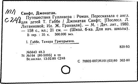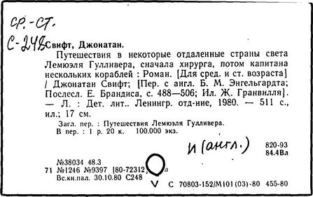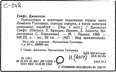 Джонатан Свифт. Путешествия в некоторые отдаленные страны Лемюэля Гулливера сначала хирурга, а потом капитана нескольких кораблей (1727)