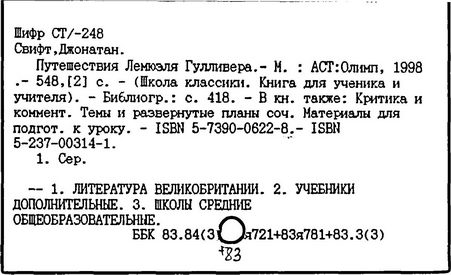 Джонатан Свифт. Путешествия Лемюэля Гулливера (1726)