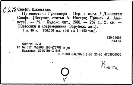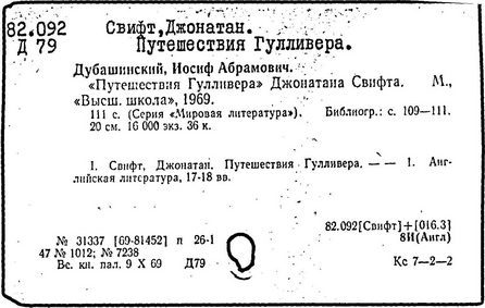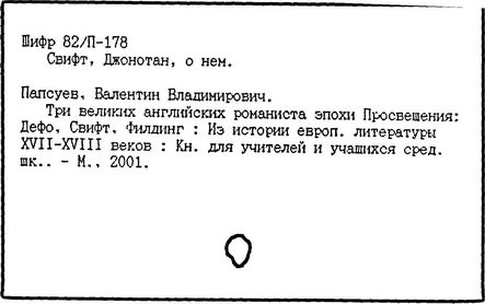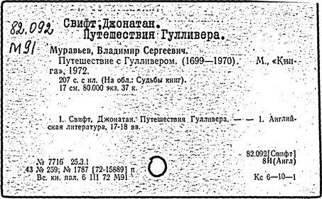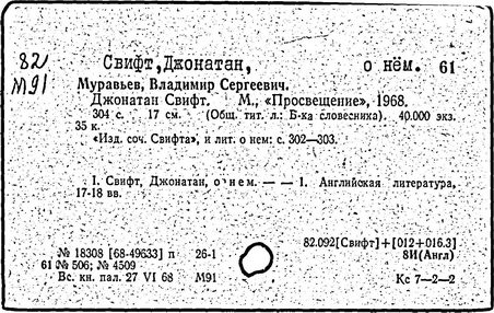 Литература: Заблудовский М. Д., Сатира и реализм Свифта, в сборнике: Реализм XVIII в. на Западе, М., 1936; Левидов М. Ю., Путешествие в некоторые отдаленные страны. Мысли и чувства Джонатана Свифта, М., 1964; Муравьев В., Джонатан Свифт, М., 1968; Craik Н., The life of Jonathan Swift, v. 1—2, L., 1894; Quintana R., The mind and art of Jonathan Swift, L. — N. Y., 1936; Williams K., Jonathan Swift and the age of compromise, Lawrence, 1958; Ehrenpreis I., Swift..., v. 1—2, L., 1964—1967; Swift. Ed. by C. J. Rawson, L., [1971].
