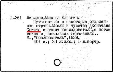 Левидов М. Ю. Путешествие в некоторые отдаленные страны мысли и чувства Джонатана Свифта, сначала исследователя, а потом воина в нескольких сражениях (1939)