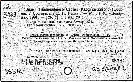 Нарва,23-25 нояб. 1992 г/ Преподобный Сергий Радонежский и