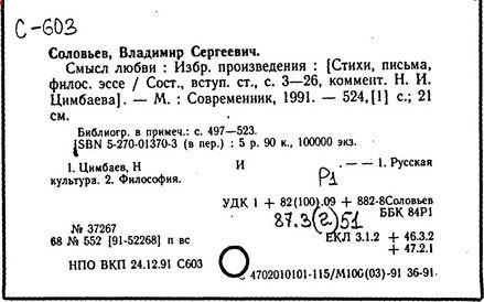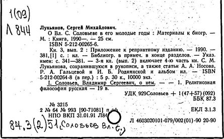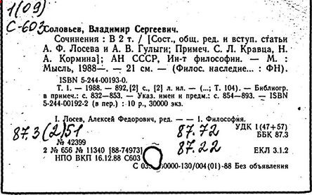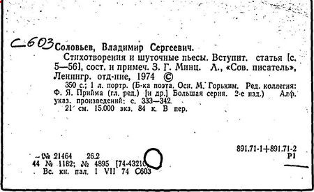 В.С. Соловьев. -Фототип. изд. -Bruxelles: Жизнь с богом, 1970.