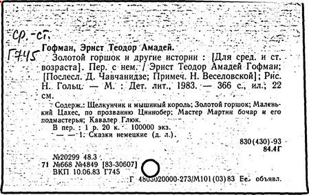 Содерж. авт.: Ш. Перро, Э. Т. А. Гофман, Братья Гримм,