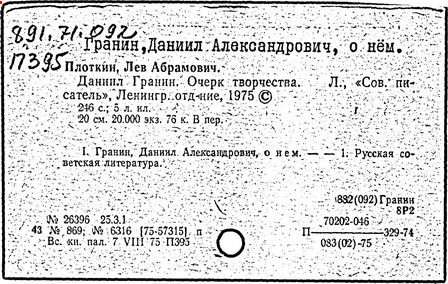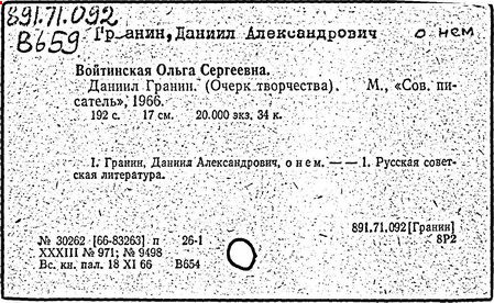 Литература: Суровцев Ю. и Щеглов М., Новаторство - это борьба, «Новый мир», 1954, № 11; Виноградов И., Личная ответственность, «Дружба народов», 1959, №2: Войтинская О., Даниил Гранин. (Очерк творчества), М., 1966; Шубин Э., Писатель и его герои. К 50-летию со дня рождения Даниила Гранина, «Звезда», 1969, № 1: Русские советские писатели-прозаики. Биобиблиографический указатель, т. 1, Л., 1959.