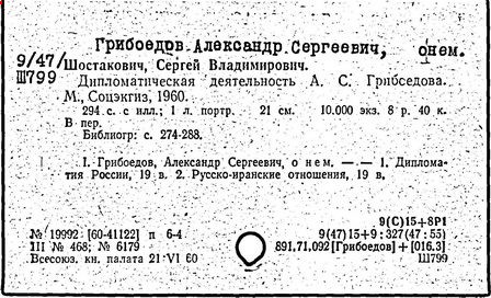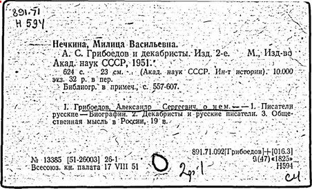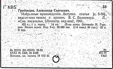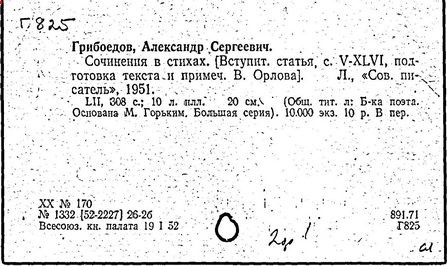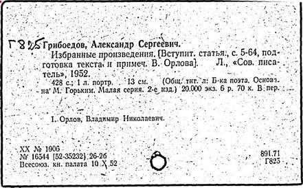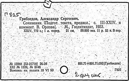 русский писатель и дипломат. Родился в Москве в старинной дворянской семье. Получил разностороннее образование. Занимался музыкой (известны два вальса Грибоедова). В 1806 г. поступил в Московский университет, в 1810 г. окончил словесный и юридический факультеты, затем учился на физико-математическом факультете. В 1812 г. поступил добровольцем в армию, но в военных действиях не участвовал. В 1817 г. зачислен в Коллегию иностранных дел. В Петербурге познакомился с А. С. Пушкиным, В. К. Кюхельбекером, П. Я. Чаадаевым. Ранние литературные опыты Грибоедова – комедии "Молодые супруги" (1815 г.), "Своя семья" (1817 г., в соавторстве с А. А. Шаховским и Н. И. Хмельницким). В комедии "Студент" (1817 г., совместно с П. А. Катениным) уже виден будущий реалист-сатирик. В 1818 г. назначен секретарём русской миссии в Тегеране. С 1822 г. был в Тбилиси секретарём по дипломатической части при командующем русскими войсками на Кавказе А. П. Ермолове. Здесь Грибоедов начал писать комедию "Горе от ума", замысел которой возник, по-видимому, ещё в 1816 г. Завершена работа над пьесой в Петербурге (1824 г.), где Грибоедов попал в атмосферу созревавшего заговора декабристов. Близкими друзьями Грибоедова были К. Ф. Рылеев, А. А. Бестужев, Кюхельбекер, А. И. Одоевский. Как и декабристы, Грибоедов ненавидел самодержавно-крепостнический строй, но скептически относился к возможности успеха военного заговора.