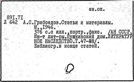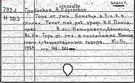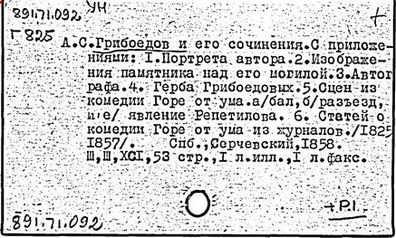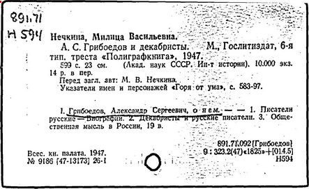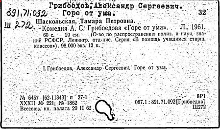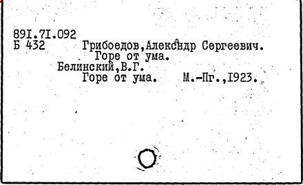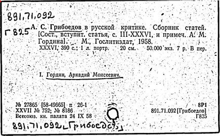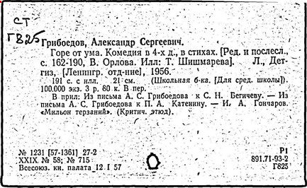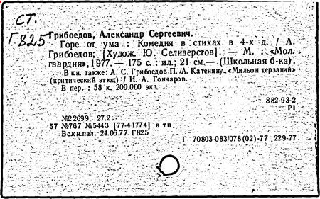 Литература: Белинский В. Г., "Горе от ума", Полн. собр. соч., т. 3, М., 1953; Гончаров И. А., "Мильон терзаний". Собр. соч., т. 8, М., 1952; А. С. Грибоедов в воспоминаниях современников, М., 1929; Пиксанов Н. К., Творческая история "Горя от ума", М. - Л., 1928; Литературное наследство, т. 47-48 [Грибоедов], М., 1946; Нечкина М. В., А. С. Грибоедов и декабристы, 2 изд., М., 1951; Орлов В. Н., Грибоедов, 2 изд., М., 1954; Петров С., А. С. Грибоедов, 2 изд., М., 1954; А. С. Грибоедов в русской критике, М., 1958; Попова О. И., Грибоедов - дипломат, М., 1964; История русской литературы XIX в. Библиографич. указатель, М. - Л., 1962.