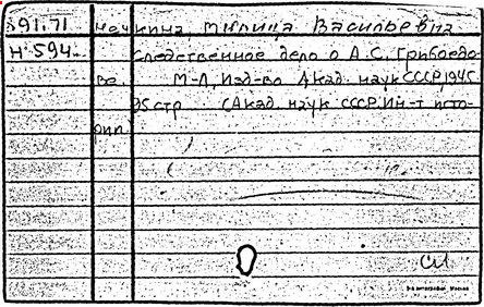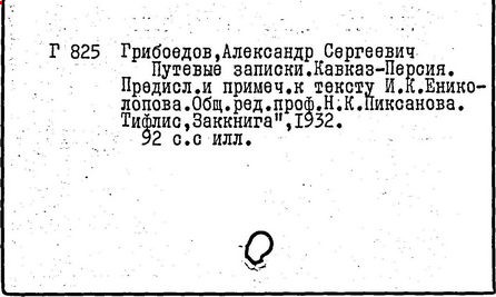 Возвратившись в 1825 г. на Кавказ, Грибоедов получил известие о разгроме восстания 14 декабря. В январе 1826 г. в крепости Грозный Грибоедов был арестован и находился в Петербурге под следствием по делу декабристов до 2 июня 1826 г. Доказать его участие в заговоре не удалось, но за Грибоедовым был установлен секретный полицейский надзор. Возвратившись в сентябре 1826 г. в Тбилиси, Грибоедов продолжал дипломатическую деятельность; с 1827 г. ему поручено ведать сношениями с Турцией и Ираном. По окончании русско-иранской войны 1826 – 1828 гг. участвовал в выработке выгодного для России Туркманчайского мирного договора, текст которого доставил в марте 1828 г. в Петербург. Грибоедов привёз план и отрывки начатой им романтической трагедии "Грузинская ночь" (опубликована в 1859 г.).