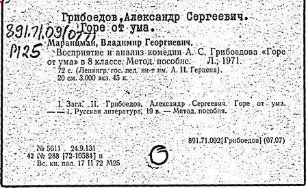 "Горе от ума" [Текст]: 9 кл./ П. А. Гапоненко