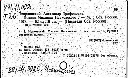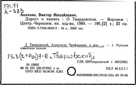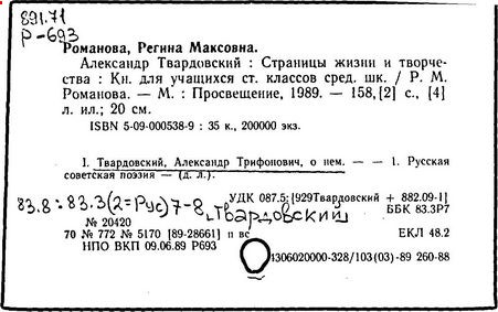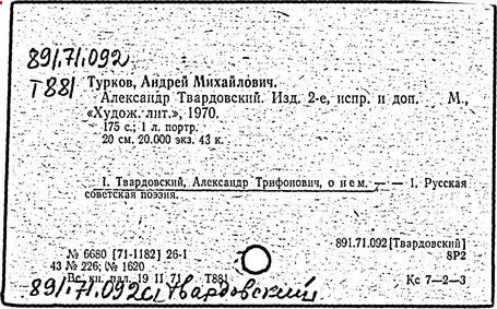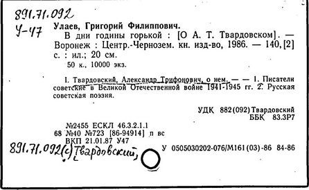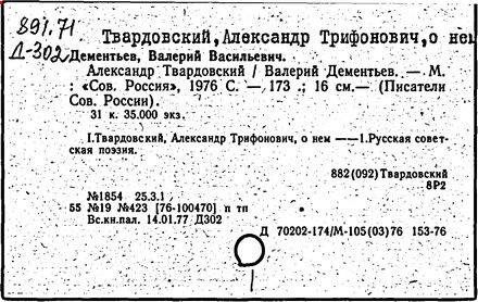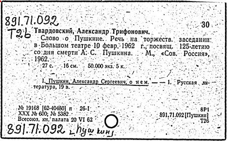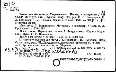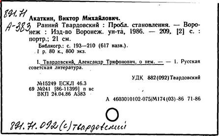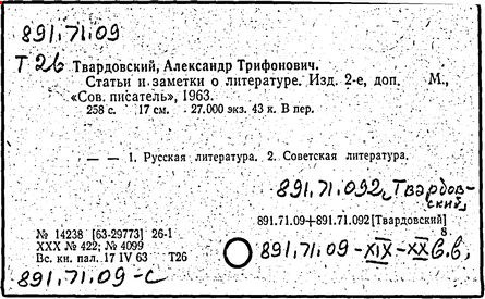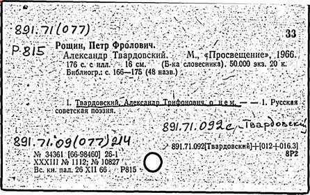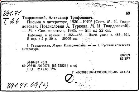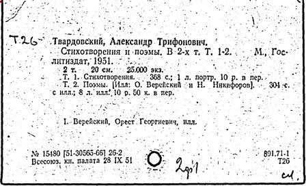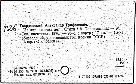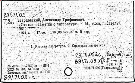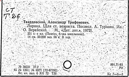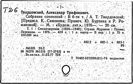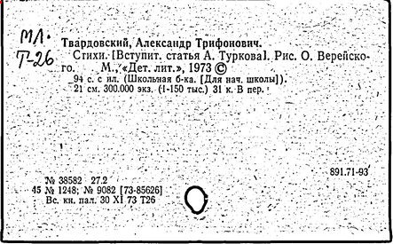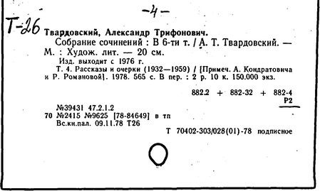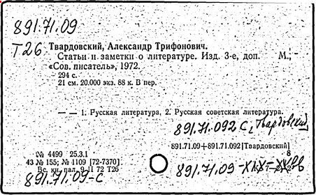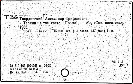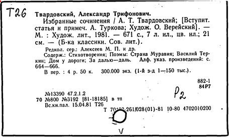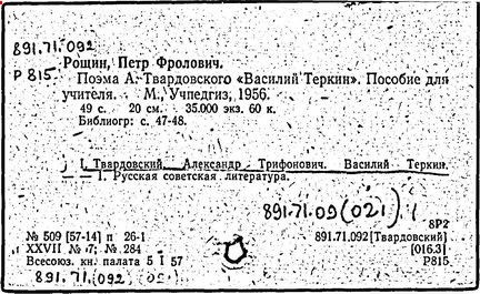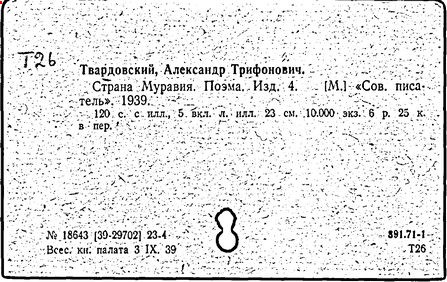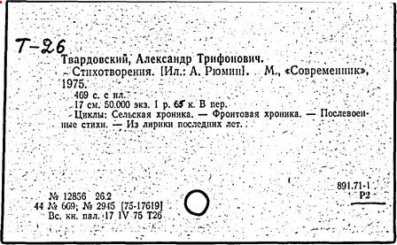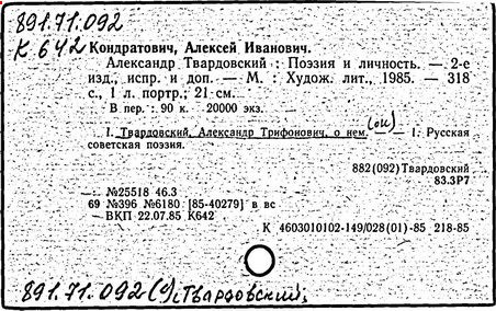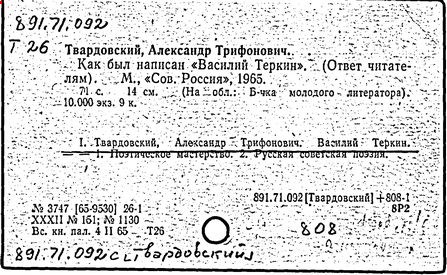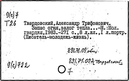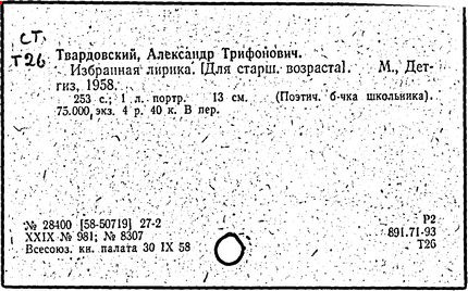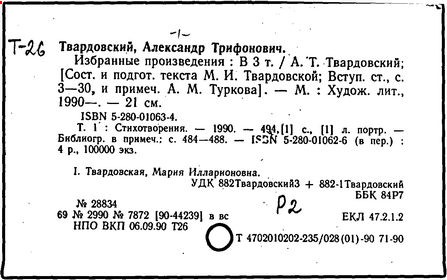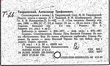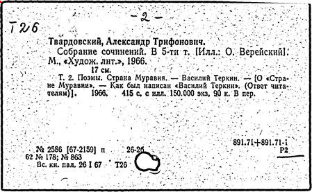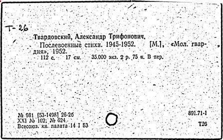 русский советский поэт и общественный деятель. Родился на хуторе Загорье (ныне Починковский район Смоленской области). Сын сельского кузнеца. Учился в Смоленском педагогическом институте; в 1939 г. окончил Московский институт истории, философии и литературы (МИФЛИ). Писать стихи начал с раннего детства; с 1924 г. – селькор, печатавший в местных газетах корреспонденции, стихи, очерки. Судьба крестьянина в годы коллективизации – тема первых поэм Твардовского "Путь к социализму" (1931 г.) и "Вступление" (1933 г.), "Сборника стихов. 1930-1935" (1935 г.), повести "Дневник председателя колхоза" (1932 г.) – с наибольшей художественной силой воплотилась в поэме "Страна Муравия" (1936 г.; Государственная премия СССР, 1941 г.). Её герой Никита Моргунок не только наблюдает во время своих странствий картину "великого перелома", но и сам воплощает драму расставания с прежними надеждами и иллюзиями. В стиле поэмы своеобразно преломились символика и гиперболизм сказки; её язык богат образами, идущими от восприятия мира крестьянином. В лирике 30-х гг. (сборники "Сельская хроника", 1939 г.; "Загорье", 1941 г., и др.) Твардовский стремился уловить изменения в характерах людей колхозной деревни, выразить владевшие ими чувства. Участие в советско-финляндской войне 1939 – 1940 гг. в качестве корреспондента военной печати подготовило обращение Твардовского к теме советского воина: цикл стихов "В снегах Финляндии" (1939 – 1940 гг.), прозаические записи "С Карельского перешейка" (опубликованы в 1969 г.). Во время Великой Отечественной войны 1941 – 1945 гг. Твардовский работал во фронтовых газетах, публикуя в них стихи ("Фронтовая хроника") и очерки. В поэме "Василий Тёркин (Книга про бойца)" (1941 – 1945 гг.; Государственная премия СССР, 1946 г.) фольклорная фигура бойкого, бывалого солдата претворена в эпически ёмкий образ, воплотивший глубину, значительность, многообразие мыслей и чувств так называемых рядовых, простых людей военного времени. Богатству натуры героя отвечает гибкость избранного поэтом жанра; картины, исполненные огромного трагизма, перемежаются проникновенными лирическими отступлениями или лукавой, сердечной шуткой. "Это поистине редкая книга, – писал И. А. Бунин. – Какая свобода, какая чудесная удаль, какая меткость, точность во всём и какой необыкновенный народный солдатский язык – ни сучка, ни задоринки, ни единого фальшивого, готового, то есть литературно-пошлого слова!" ("Литературный Смоленск", 1956, книга 15, с. 325-26). Ярко выразившая нравственные идеалы народа, книга получила всенародную известность, вызвала многочисленные подражания, стихотворные "продолжения".