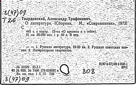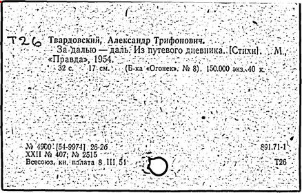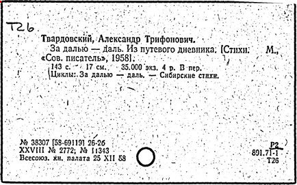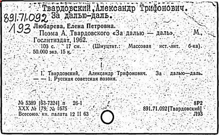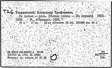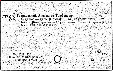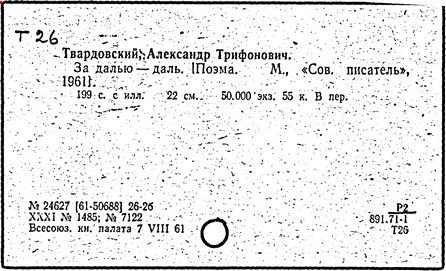 Литература: Александров В., Три поэмы Твардовского, в его кн.: Люди и книги, М., 1956; Любарёва Е., Александр Твардовский. Критико-биографический очерк, М., 1957; её же, Поэма А. Твардовского "За далью - даль", М., 1962; Выходцев П., Александр Твардовский, М., 1958; его же, А. Т. Твардовский. Семинарий, Л., 1960; Маршак С., Ради жизни на земле. Об А. Твардовском, М., 1961; Макаров А., Александр Твардовский и его "Книга про бойца", "За далью - даль", в его кн.: Идущим вослед, М., 1969; Турков А., Александр Твардовский, 2 изд., М., 1970; Лакшин В., Новая лирика Твардовского, в кн.: День поэзии, М., 1971.