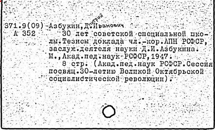 Литература: Памяти Д. И. Азбукина // Советская педагогика. – 1953. – № 8; Памяти Д. И. Азбукина // Учебно-воспитательная работа в спецшколах. – 1953, вып. 4.