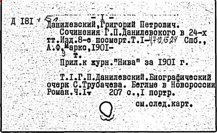 Литература: Трубачёв С. С., Г. П. Данилевский. Биографический очерк, СПБ, 1893; История русской литературы XIX в. Библиографический указатель, М. - Л., 1962.