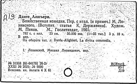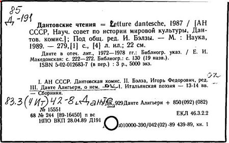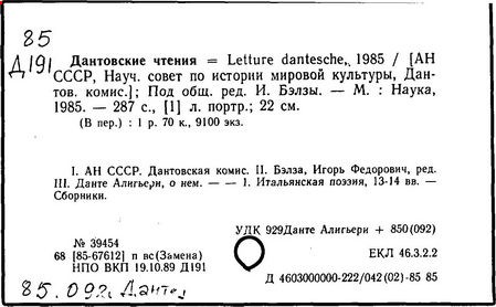Дант. комис.; Под общ. ред. И. Бэлзы. -М.: Наука, 1993.