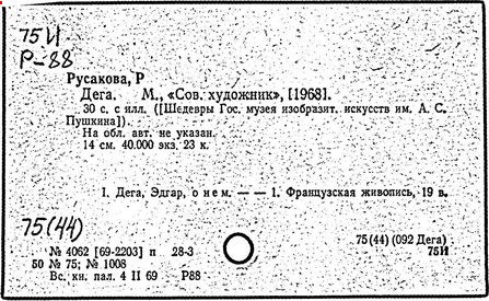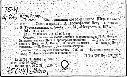 Литература: Тугендхольд Я., Эдгар Дега и его искусство, М., 1922; [Зернов Б. А.], Дега. [Альбом], Л. - М., 1965; Русакова P., Дега, М., [1968]; Lemoisne P. A., Degas et son ceuvre, v. 1-4, P., 1946-48; Cabanne P., Edgar Degas, P., 1957; L’opera completa di Degas, Mil., 1970.