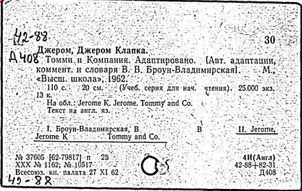 английский писатель. Родился в Уолсолле, графство Стаффордшир. Был учителем, подручным стряпчего, артистом, редактором юмористических журналов. Первые произведения Джерома связаны с театром. В 1899 г. посетил Россию; свои впечатления описал в статье "Русские, какими я их знаю" (издана на русском языке под названием "Люди будущего", 1906 г.). Самое популярное произведение Джерома – комическая повесть "Трое в лодке (не считая собаки)" (1889 г.). Продолжение этого произведения – повесть "Трое на велосипеде" (1900 г.). Джером – автор многих юмористических рассказов и пьес, среди которых наиболее популярна "Жилец с четвёртого этажа" (1907 г.). Юмор Джерома добродушный, нередко с примесью сентиментальности и морализации. Обычная его тема – мелкие невзгоды незадачливых обывателей.