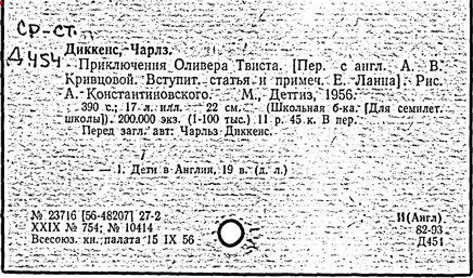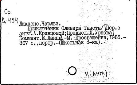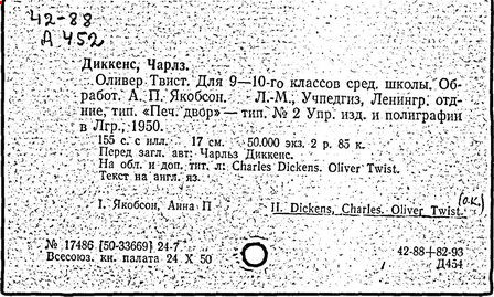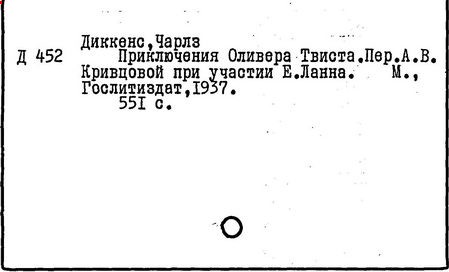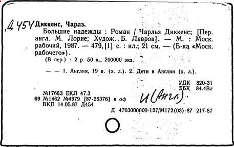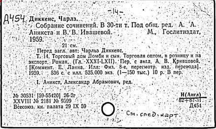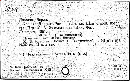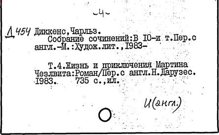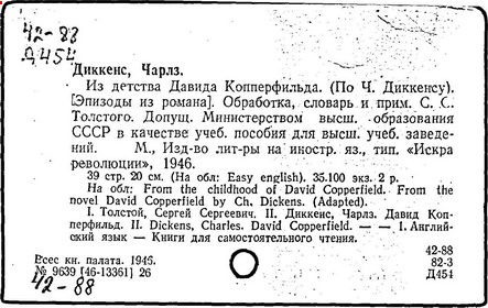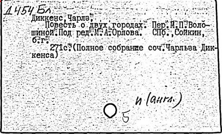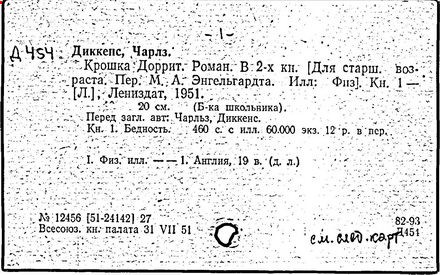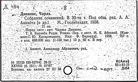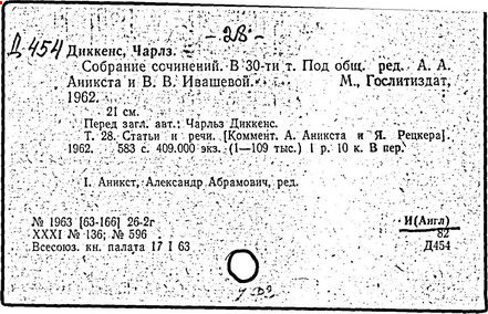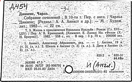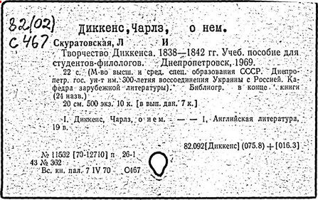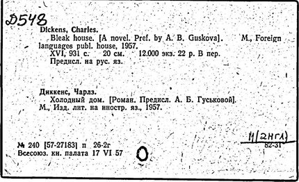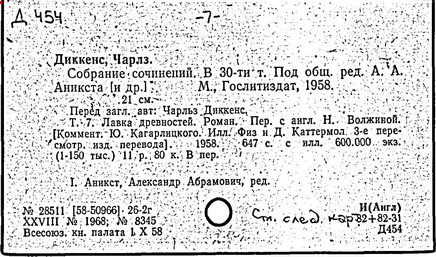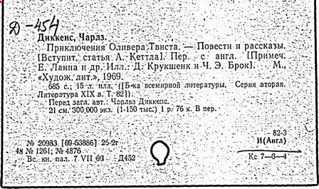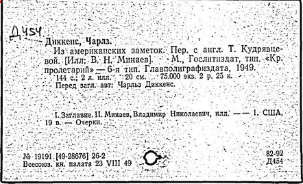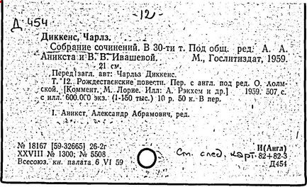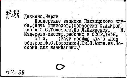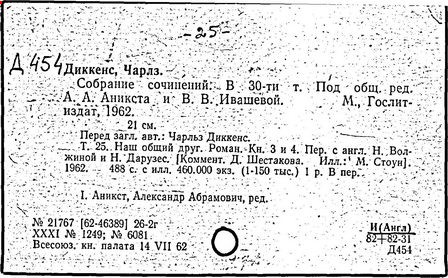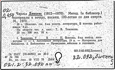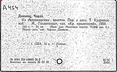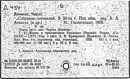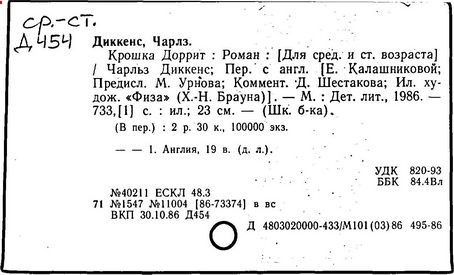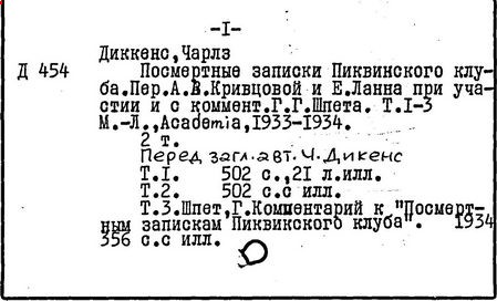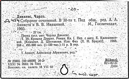 Почти все написанное Диккенса переведено на русский язык и в свое время появлялось в журналах, а затем и отдельными изданиями. Лучшим переводчиком Диккенса следует признать Иринарха Введенского ("Замогильные записки Пиквикского клуба", 3-е изд., М., 1884; "Давид Копперфильд", ibid.; "Домби и сын" — "Современник", 1847 и отд., 1848), художественный перевод которого, однако, часто отступает от оригинала. В настоящее время (1893) выходит полное собрание сочинений Диккенс в переводе Ранцова (изд. Павленкова). Лучшие биографии Диккенса на англ. яз.: Forster, "Life of Charles D." (Л., 1871-72; в "Русском Вестнике", 1873, 2-4) и Marzials, "Life of D." (в коллекции "Great Writers"). Его старшей дочерью изд. (1880) "The letters of Ch. D.". Ср. также F.G. Kitton, "Dickensiana: A bibliography of the literature relating to Ch. D. and his writings" (1886); биография Д. (в "Соврем.", 1852, т. 31-й) "Смерть Д." ("Дело", 1870, 6, Реклю); "Русский Вестн.", 1870, 6, Нелюбова; "Детство и молодость Д." ("Вестн. Европы", 1872, 6); биография Д. Анненковой (1893), в коллекции изд. Павленкова. Ряд статей о Д., Я. П. Полонского в "Сев. Вестнике" (1889-90); А. Кирпичникова, "Д. как педагог" (Харьков, 1889; перепечатано в его книге "Педагогические очерки") и Линниченко, "Обзор политич. деятельности англ. романиста Д." ("Киевского унив. изв.", 1866).
