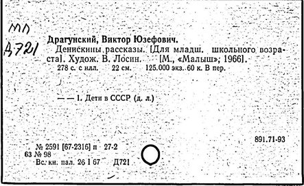 [Для мл. шк. возраста]/ В.Ю. Драгунский. -М.: Дом, 1994. -
