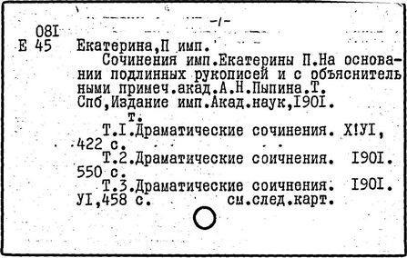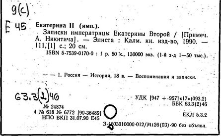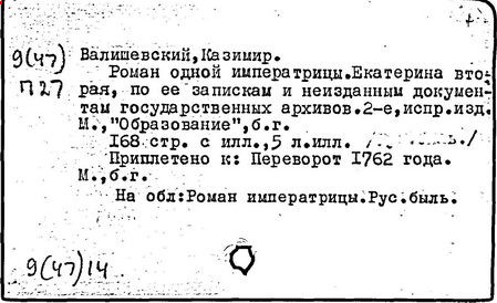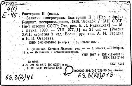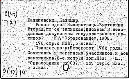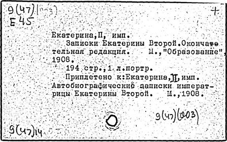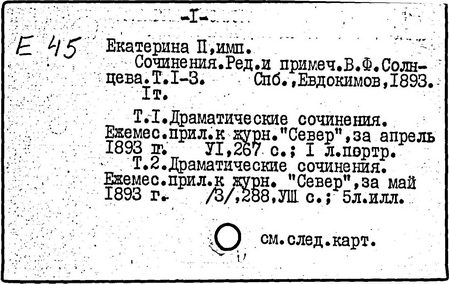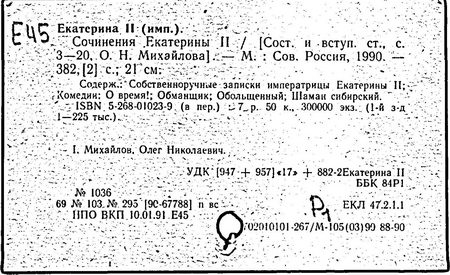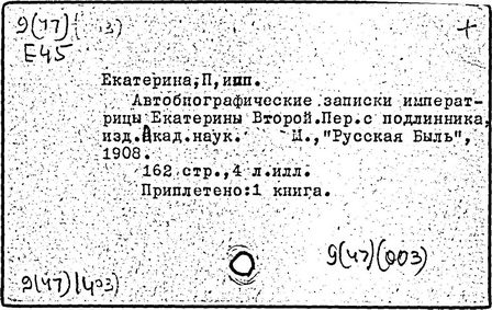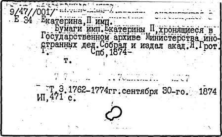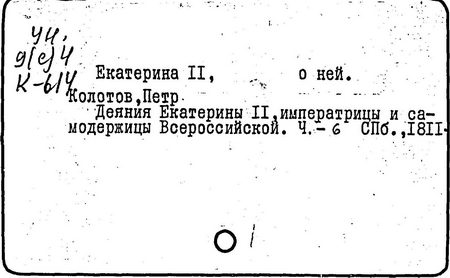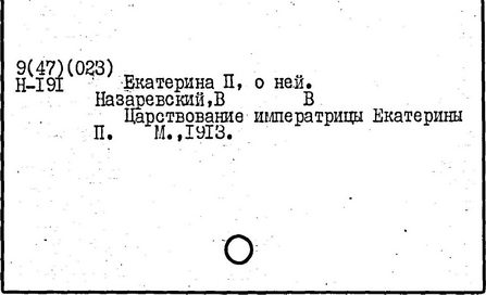 Литература: Соловьев С. М. История России с древнейших времен, Соч., т. 25-29. М., 1965-66; Брикнер А. Г. История Екатерины Второй, ч. 1-5. СПБ, 1885; Тарле Е. В. Екатерина Вторая и ее дипломатия, ч. 1-2. М., 1945; Очерки истории СССР. Период феодализма. Россия во второй половине XVIII в. М., 1956.