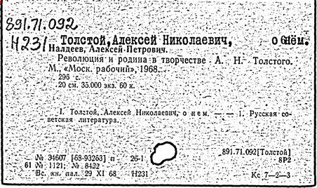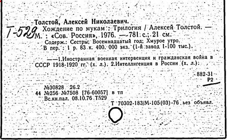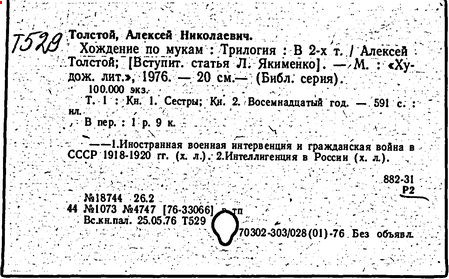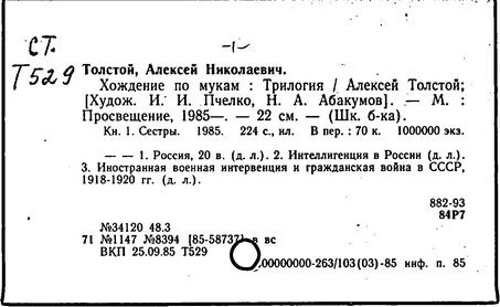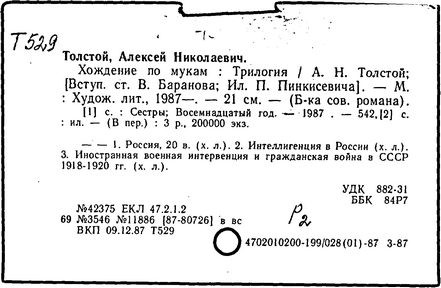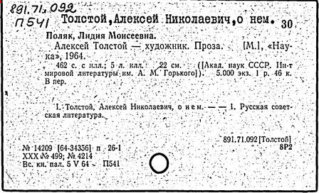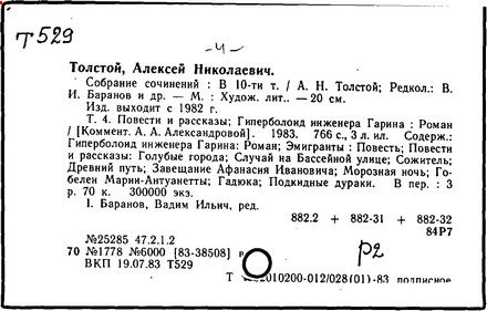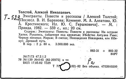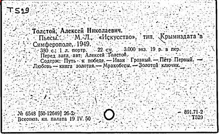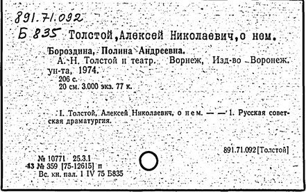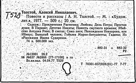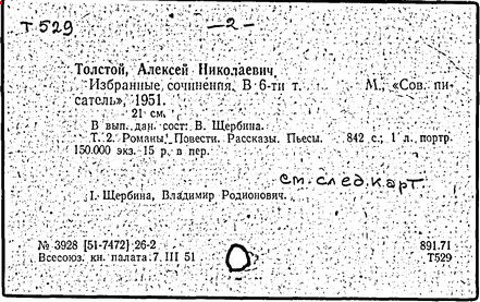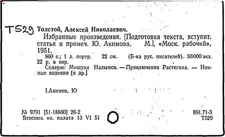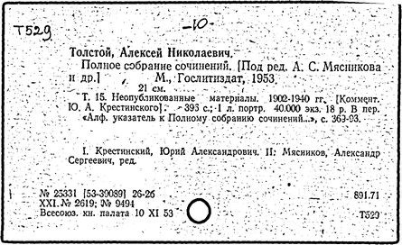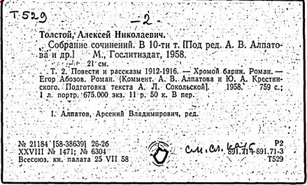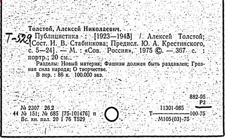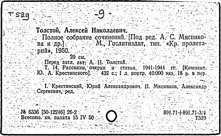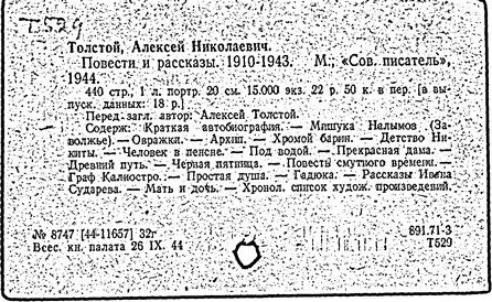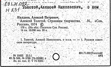 русский прозаик и драматург. Родился в Николаевске (Самарская губерния). Его писательская карьера началась в 1907 публикацией сборника стихов. Наиболее значительные произведения Толстого относятся к советскому периоду творчества, хотя первые годы после революции он провел в эмиграции в Париже (1918–1921). Вернулся в СССР и впоследствии был дважды награжден Сталинской премией за выдающийся вклад в литературу. В годы Второй мировой войны Толстой отдавал много сил журналистике и писал многочисленные фронтовые очерки.