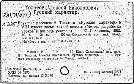 А. Н. Толстого "Русский характер" [Текст]: VII кл./