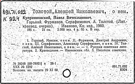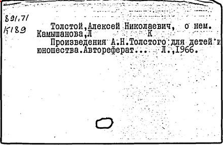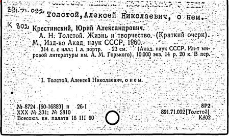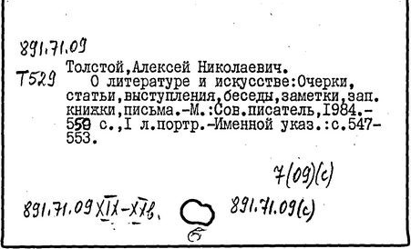 Литература: Алпатов А.В. Творчество А.Н.Толстого. М., 1956 Чуковский К.И. Алексей Толстой. – В кн.: Чуковский К. Собрание сочинений, тт. 1–6. М., 1966 Петелин В.В. Судьба художника: Жизнь, личность, творчество А. Н. Толстого. М., 1982 Толстой А.Н. Собрание сочинений, тт. 1–10. М., 1982–1986