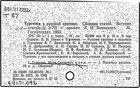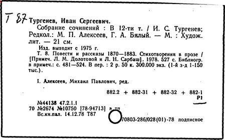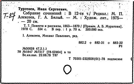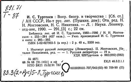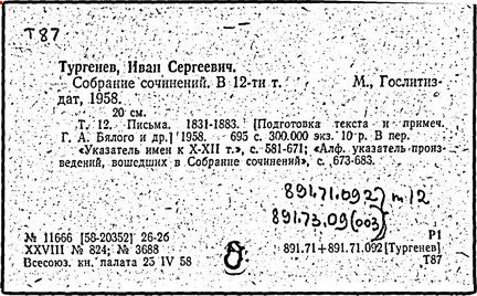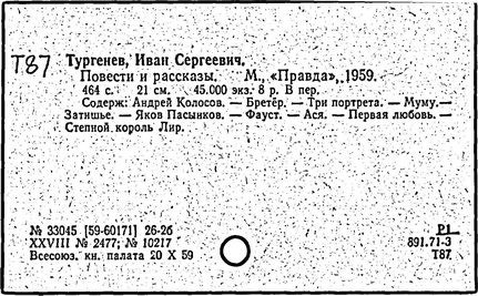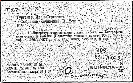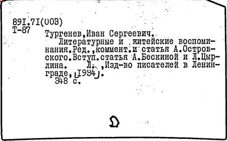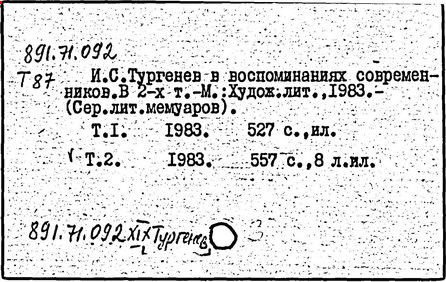 Указ. произведений Тургенева, помещ. в тт. I-XV: с. 431-445.- Указ.: с. 446-489.