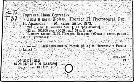И. С. Тургенев. Отцы и дети [Текст]: Анализ текста. Осн. содерж.