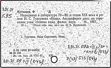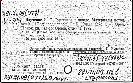 Финал романа И. С. Тургенева "Отцы и дети" [Текст]: 10 кл./