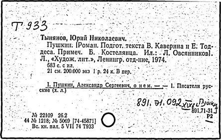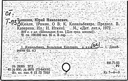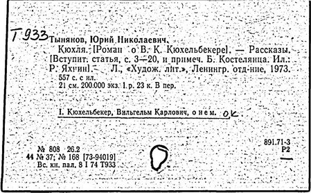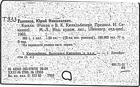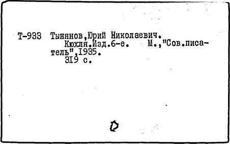Литература: Цырлин Л. Тынянов-беллетрист. Л., 1935; Хмельницкая Т. Исследовательский роман. Историческая проза Тынянова // Голоса времени. М.; Л., 1963; Юрий Тынянов. Писатель и учёный. Воспоминания. Размышления. Встречи. М., 1966; Эйхенбаум Б. Творчество Ю. Тынянова // О прозе. Л., 1969; Русские советские писатели-прозаики. Биобиблиографический указатель, т. 5. М., 1968.