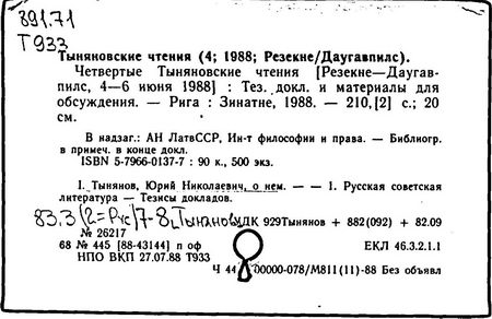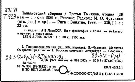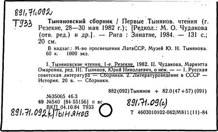 Юрий Тынянов [Текст]: Биобиблиогр. хроника,