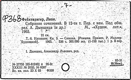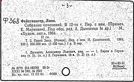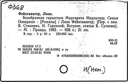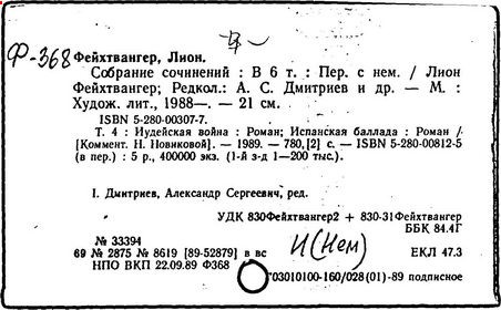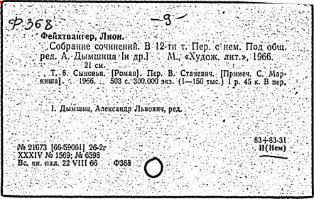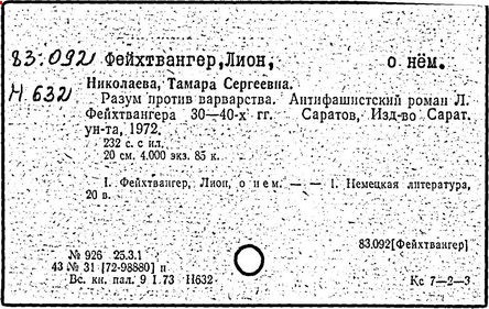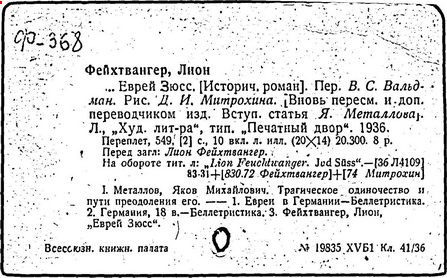 Литература: Фрадкин И. М., Пафос истории, творимой народом, в его кн.: Литература новой Германии, М., 1961; Рачинская Н. Н., Лион Фейхтвангер, М., 1965; Сучков Б., Лики времени, т. 1, М., 1976; Leupold Н., Lion Feuchtwanger, Lpz., 1967; Николаева Т. С., Разум против варварства, Саратов, 1972.